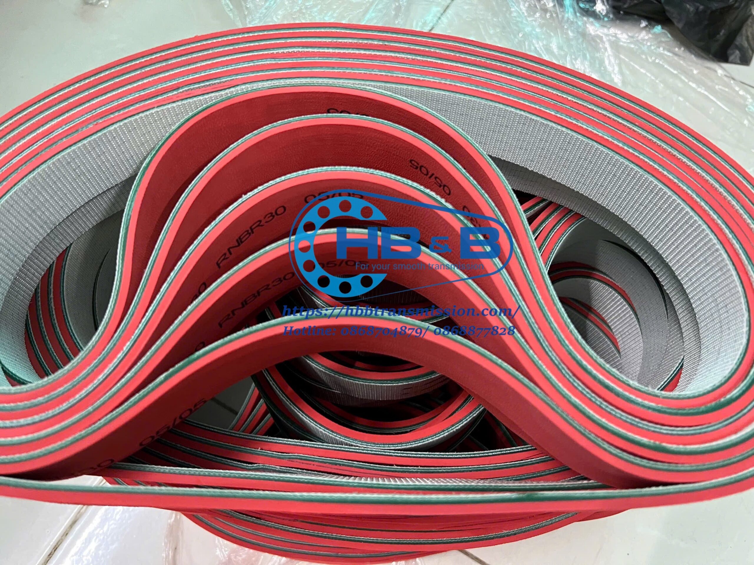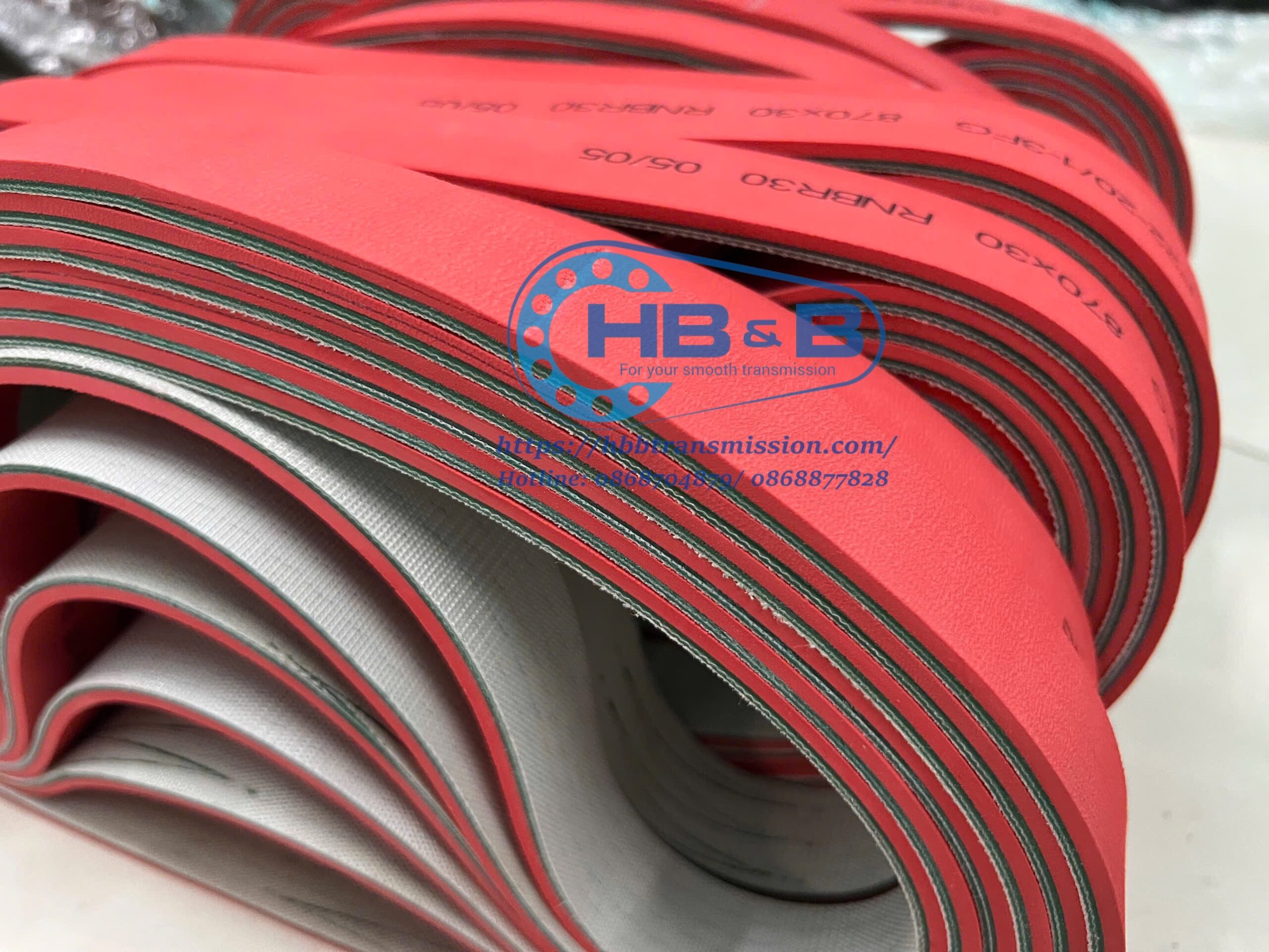 Băng tải PVC xanh đắp cao su đỏ
