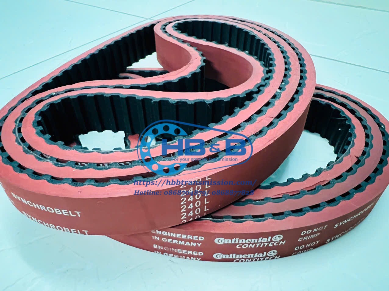 Dây curoa Contitech 240L đắp cao su đỏ hàng gia công theo kích thước yêu cầu
