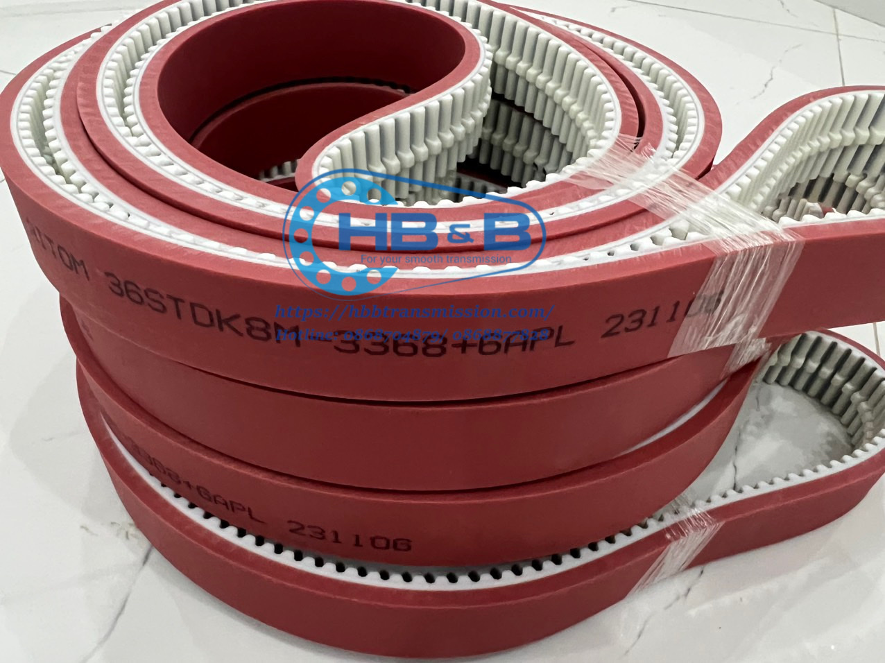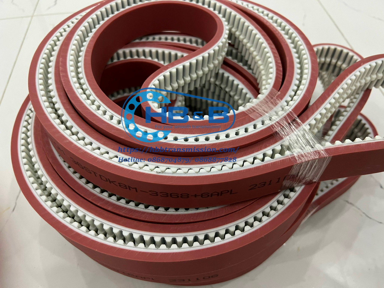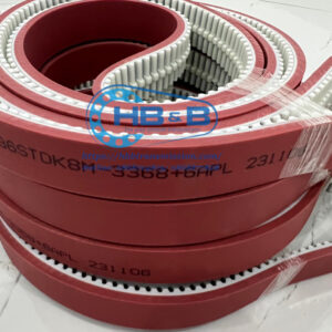 Dây curoa PU 8M-3368 đúc cao su đỏ APL gắn gân định hướng là dây PU trắng đúc tròn gắn gân định hướng , hàng đặt theo kích thước yêu cầu