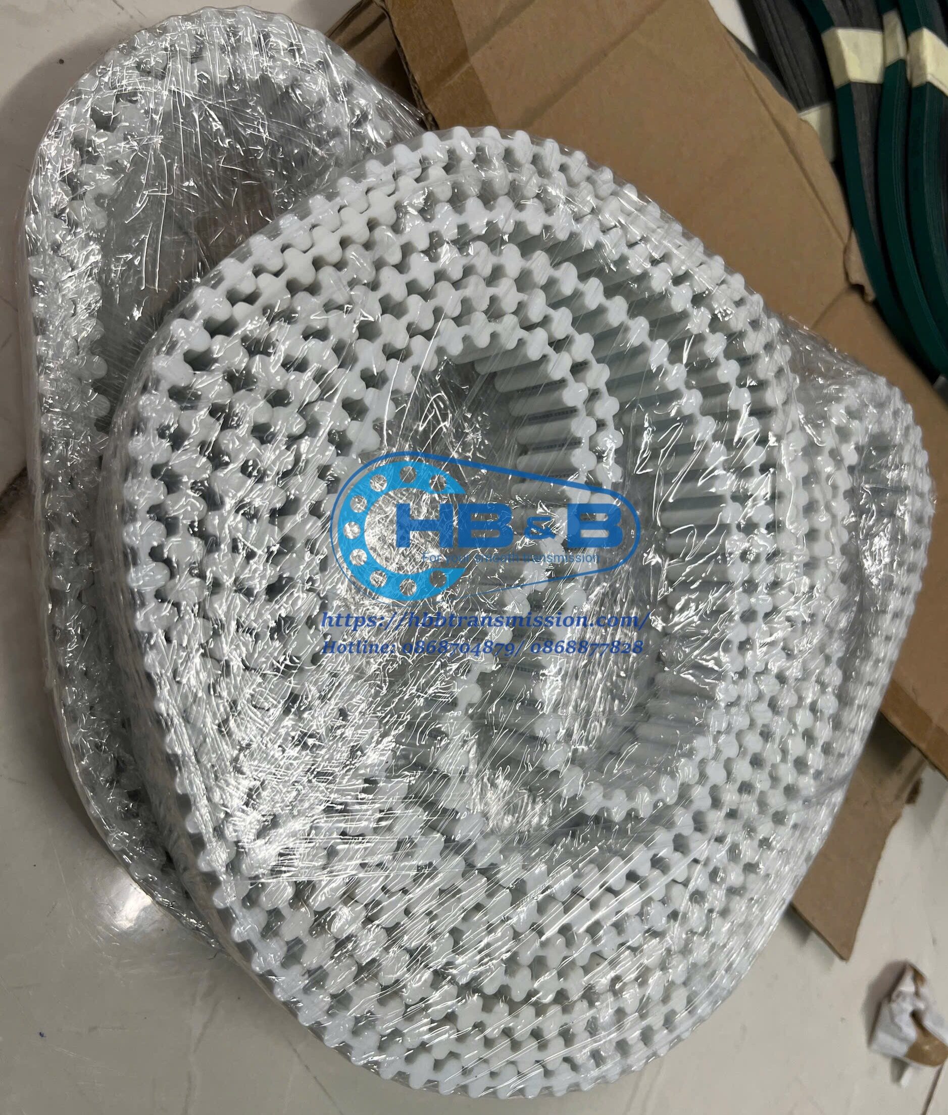 Dây curoa PU trắng lõi thép, 2 mặt răng đối xứng