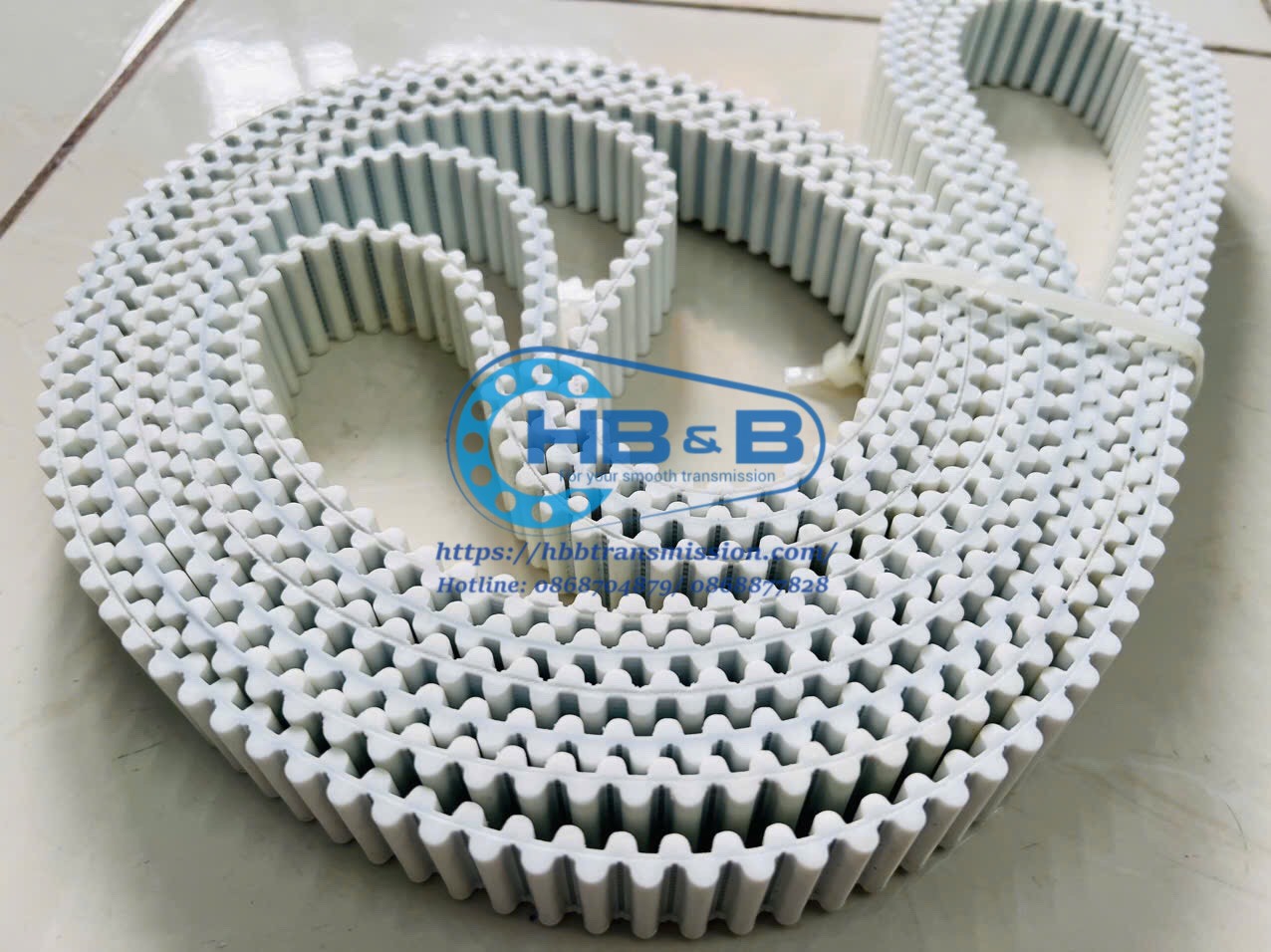 Dây curoa PU trắng lõi thép, 2 mặt răng sole là dây đúc 2 mặt răng sole nhau, hàng đặt theo kích thước yêu cầu
