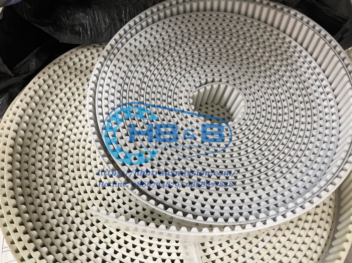 Dây curoa PU trắng lõi thép, để hở (open)